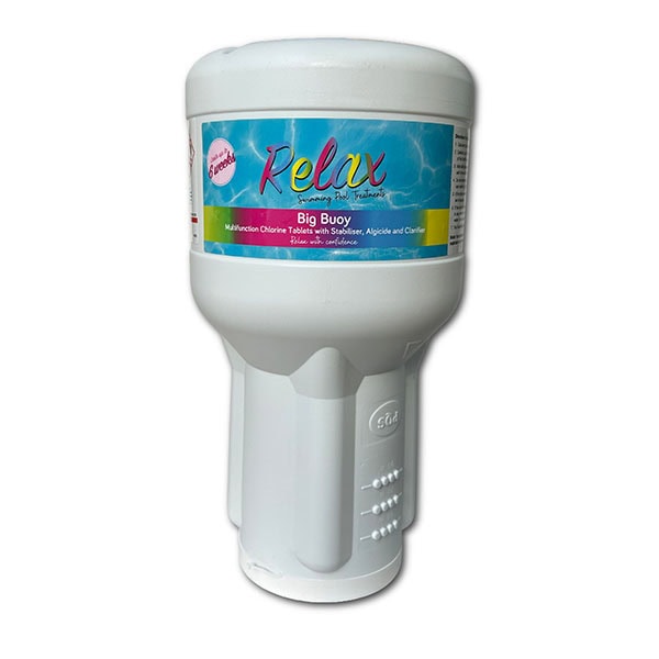 Dispenser containing multi-functional slow dissolving Stabilised Chlorine tablets, as well as chlorine, these also contain stabiliser, algicide and clarifier. One Buoy is suitable for pools up to 110,000 litres and will last up to one month.