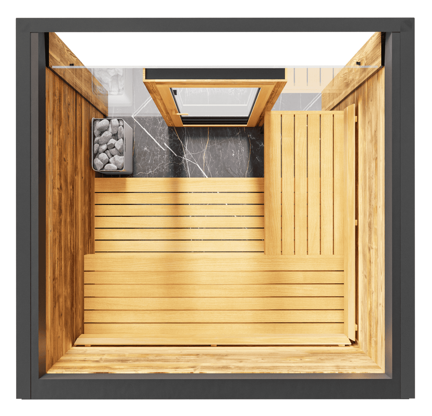 The new CUTE outdoor sauna truly lives up to its name – small in size but big on personality. With an elegant wooden façade made from durable Tyrol wood cladding and a stylish overhang that offers shelter from the rain while enhancing the sauna’s aesthetic, it’s both functional and beautiful. Thoughtfully equipped with a convenient hanger for your bathrobe or clothes, it combines style with practicality.