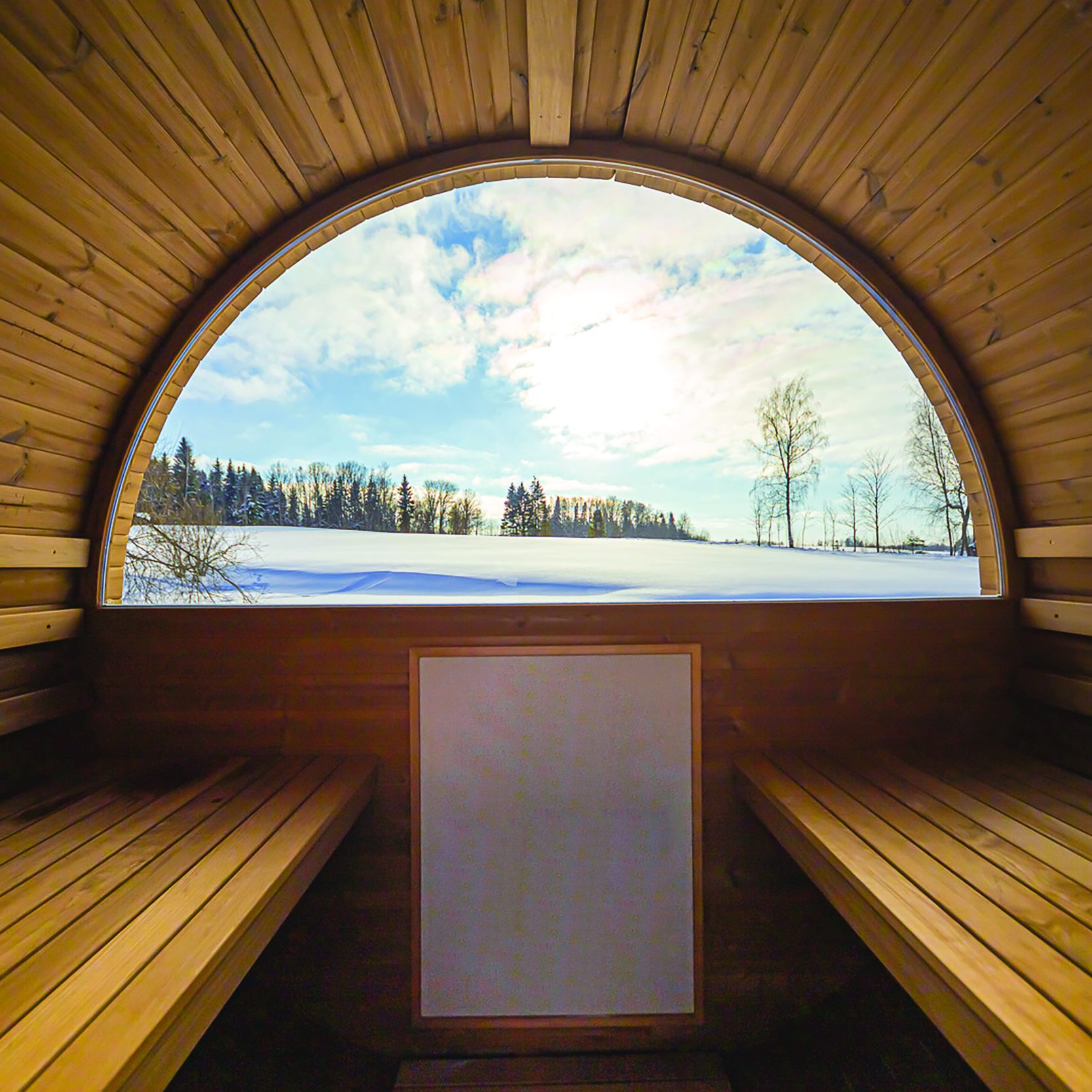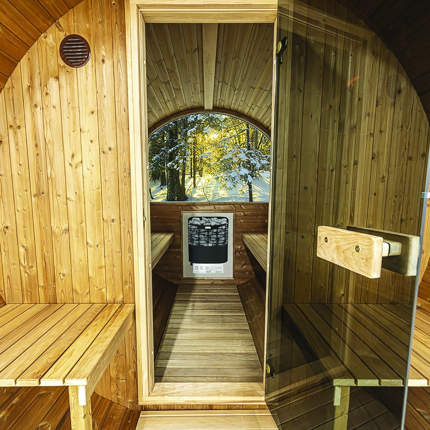 The curved barrel design minimises unused space and circulates heat evenly, warming the sauna faster than traditional square models.