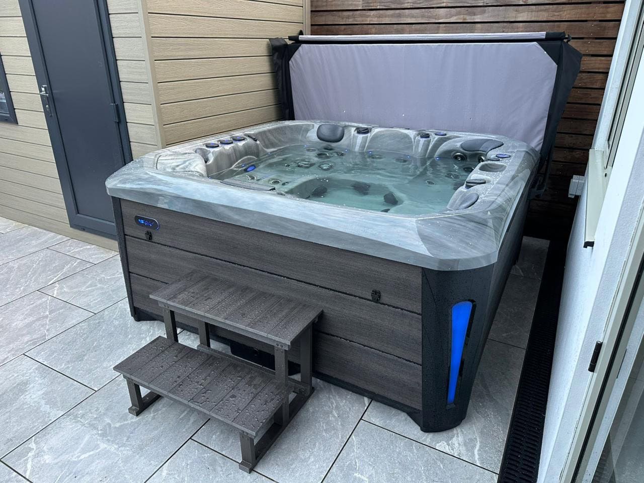 *All spas are ordered from our UK supplier, this price includes shipping, crane hire, delivery, and installation using our electricians, commissioning the spa and balancing water chemistry. If model and colour chosen is in stock in the UK, we can have you up and running as soon as 2 weeks from order. All Spas come with a 2 year parts warranty. For delivery/install, we assume there is adequate access, suitable electrics are within 8m & the area is flat and solid. But can help and advise if needed. Any queries, just give us a call 🙂